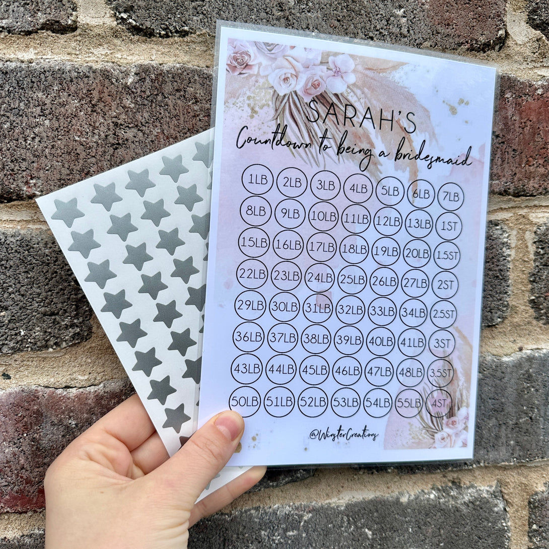 Personalised Name Countdown Bridesmaid Weight Loss Diet Slimming Chart Tracker Print - Laminated With Stars