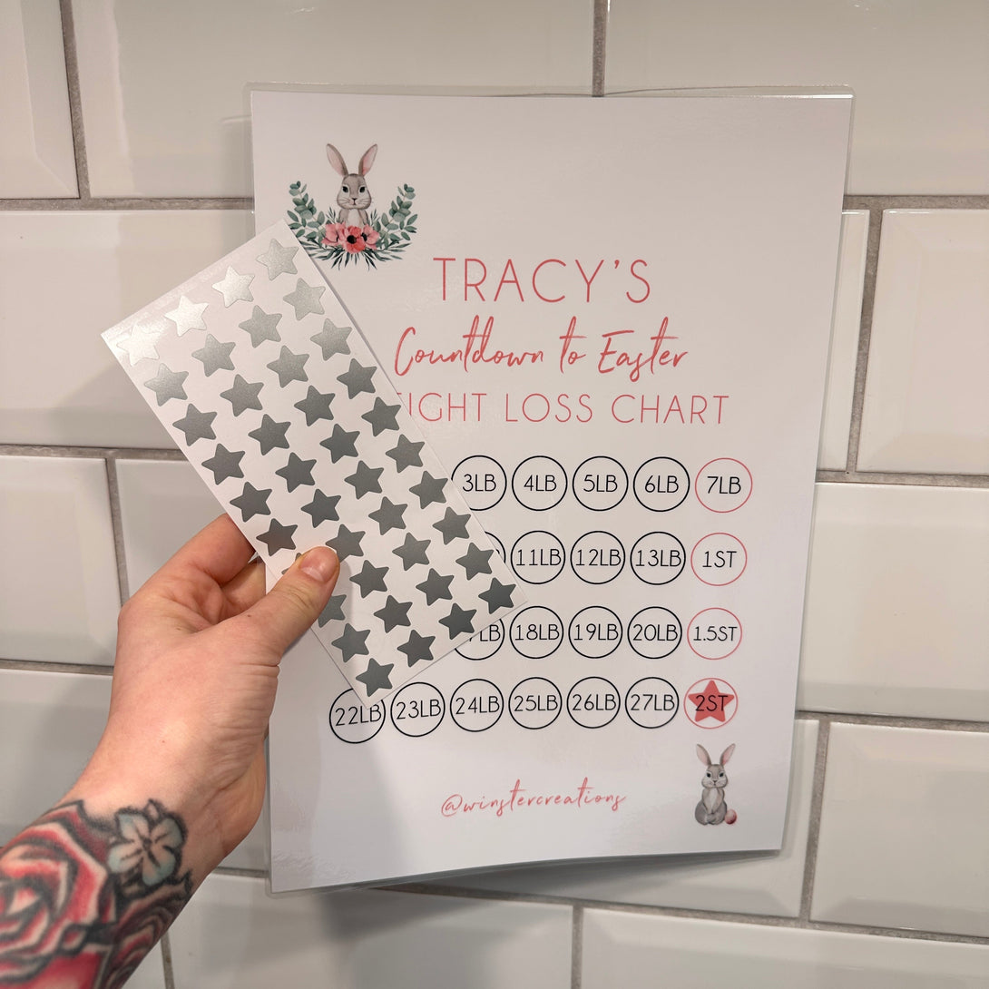 Personalised Name Countdown To Easter Spring A4 Weight Loss Diet Slimming Chart Tracker Print - st. lb Units - Laminated With Stars