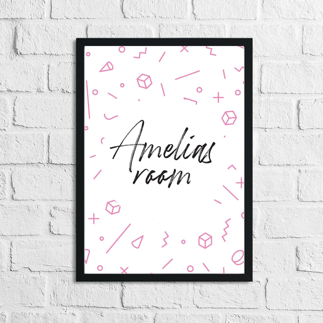 Personalised Pink Geometric Children's Room Wall Decor Print