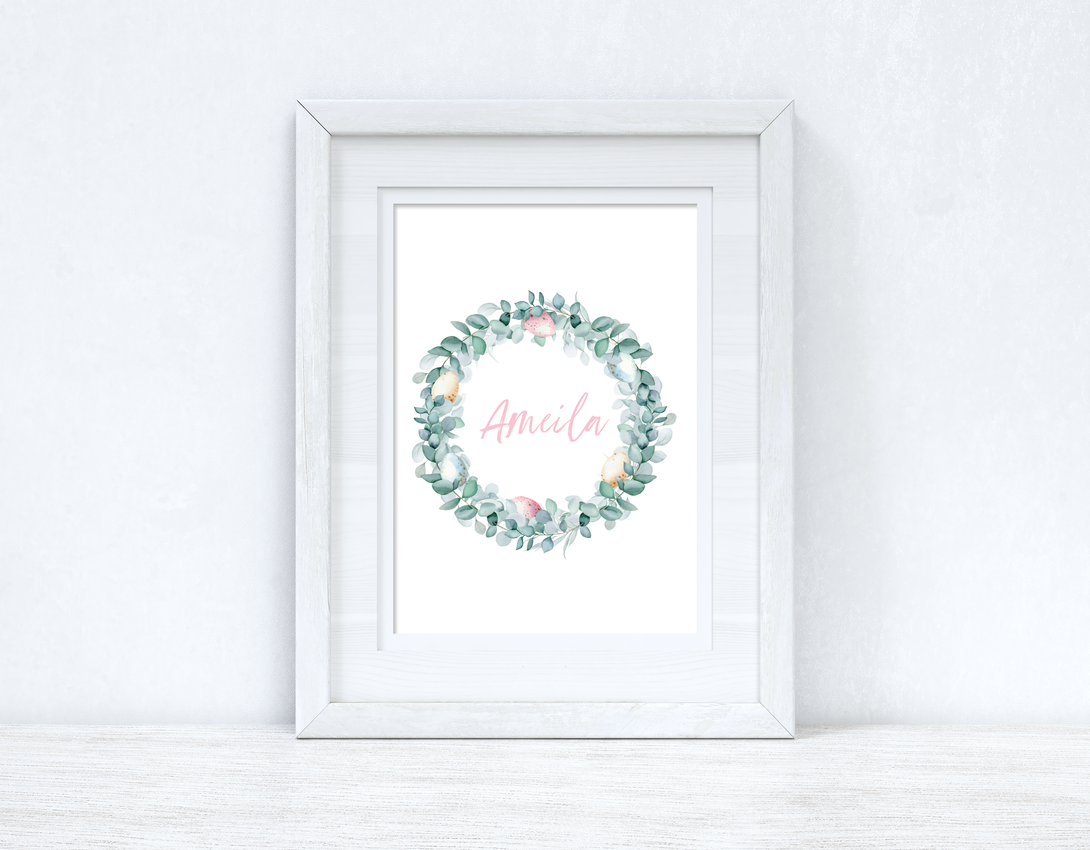 Personalised Pink Wording Easter Wreath Spring Seasonal Wall Home Decor Print