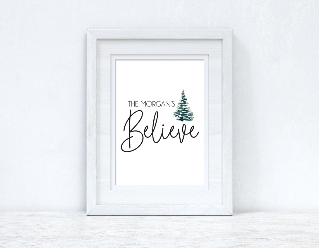 Personalised The Surname Believe Christmas Seasonal Wall Home Decor Print