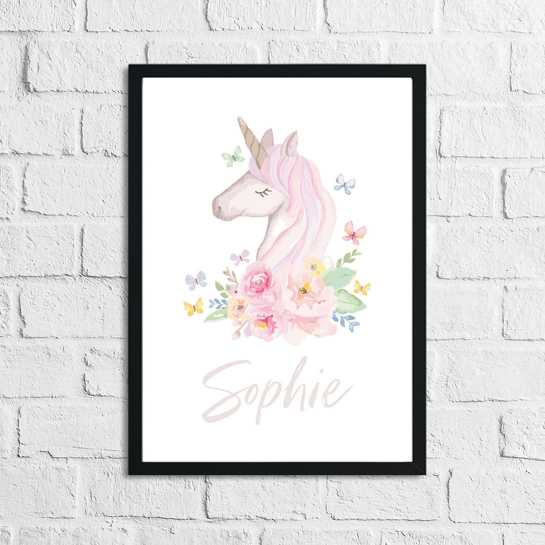 Personalised Watercolour Unicorn Name Children's Room Wall Decor Print