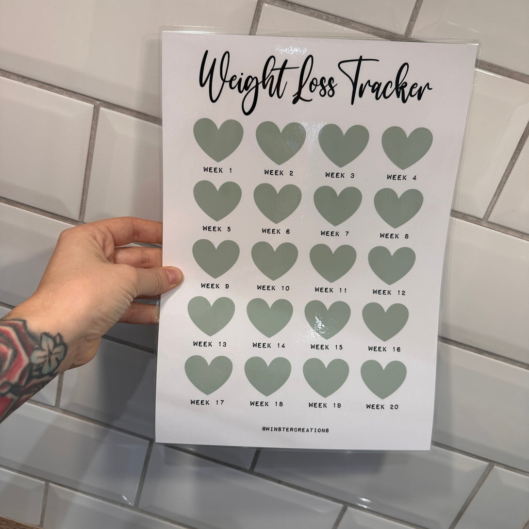 Personalised Weight Loss Tracker Sage Green Heart 20 Week Countdown A4 Weight Loss Diet Slimming Chart Tracker Print