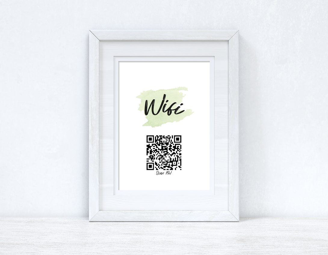 Personalised Wifi Green Splatter Scan Me! Wi-fi Q-R Scan Home Wall Decor Print