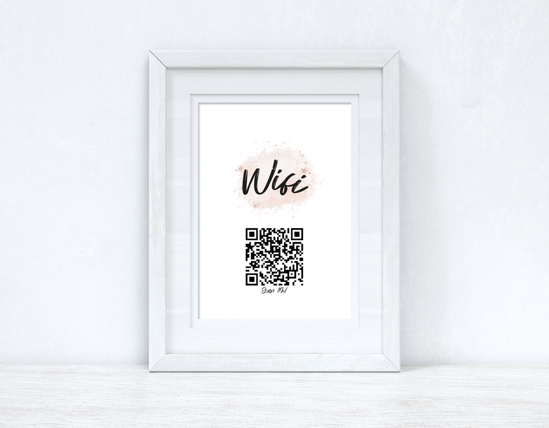 Personalised Wifi Rose Gold Pink Splatter Scan Me! Wifi QR Scan Home Wall Decor Print