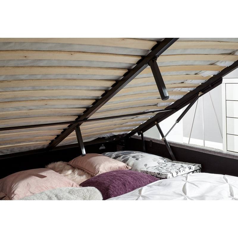 Pettine King Size Ottoman Bed Wood & Fabric Grey 5 x 7ft