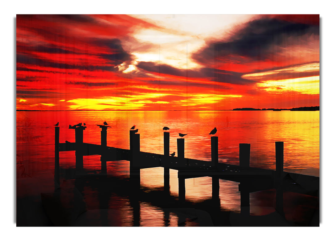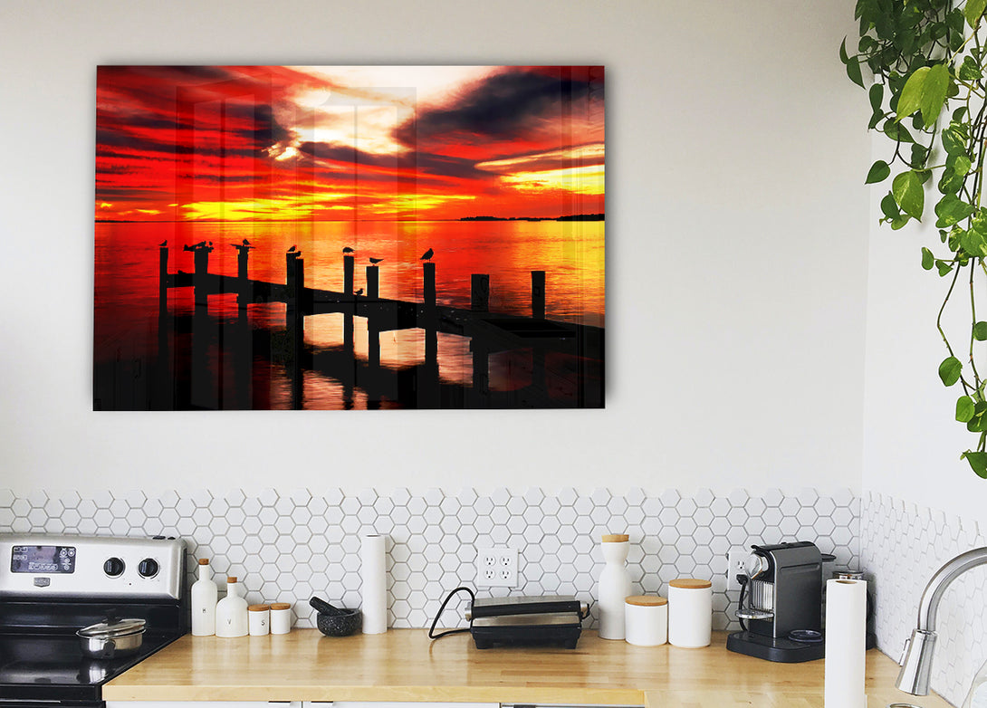 Pier Fire Sky acrylic print, UV printed onto 5mm thick acrylic glass. Comes with everything you need to hang on your wall.