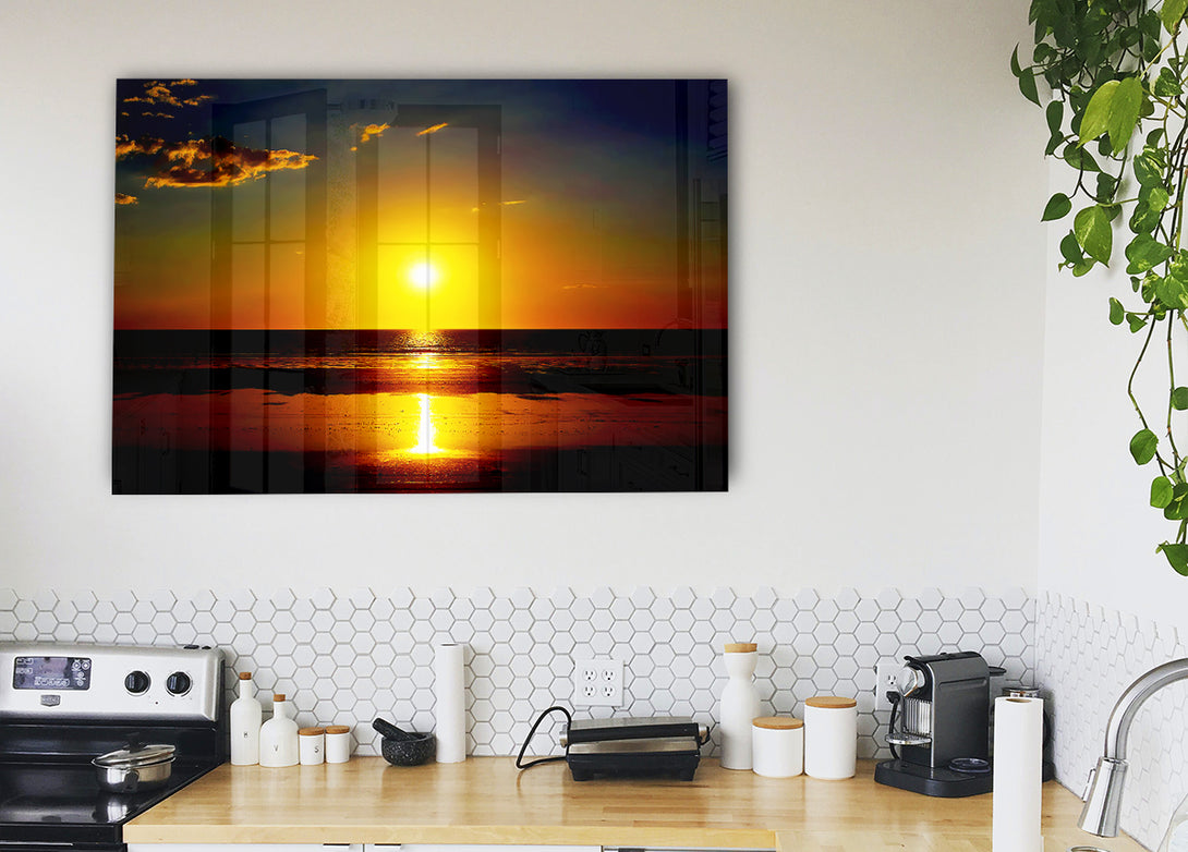 Piercing Yellow Sun Refections acrylic print, UV printed onto 5mm thick acrylic glass. Comes with everything you need to hang on your wall.