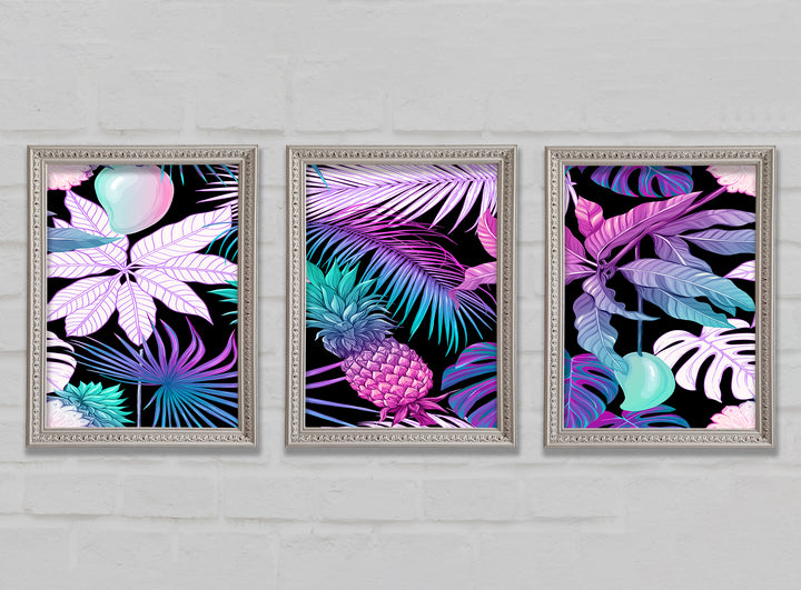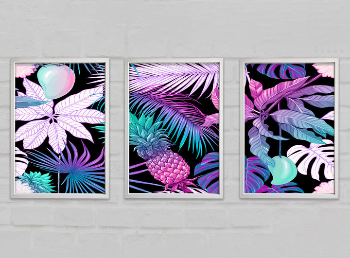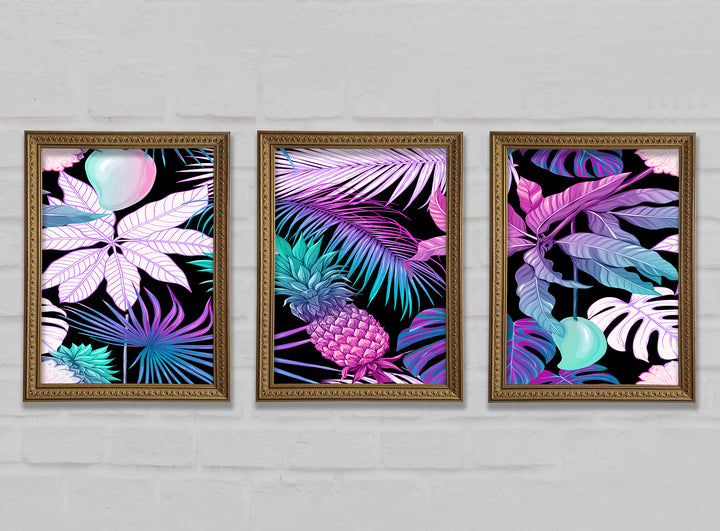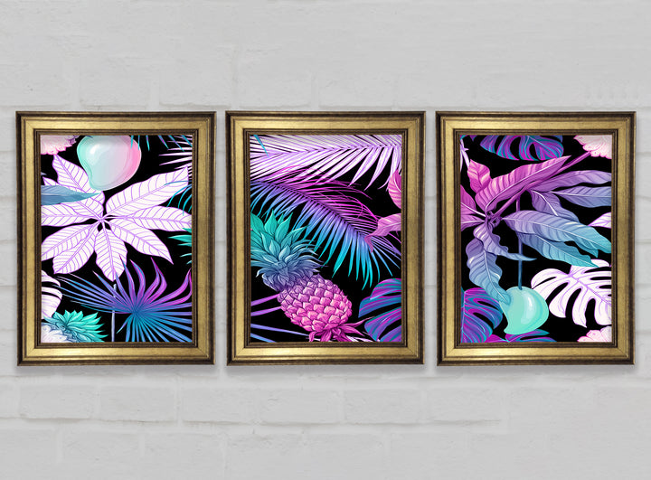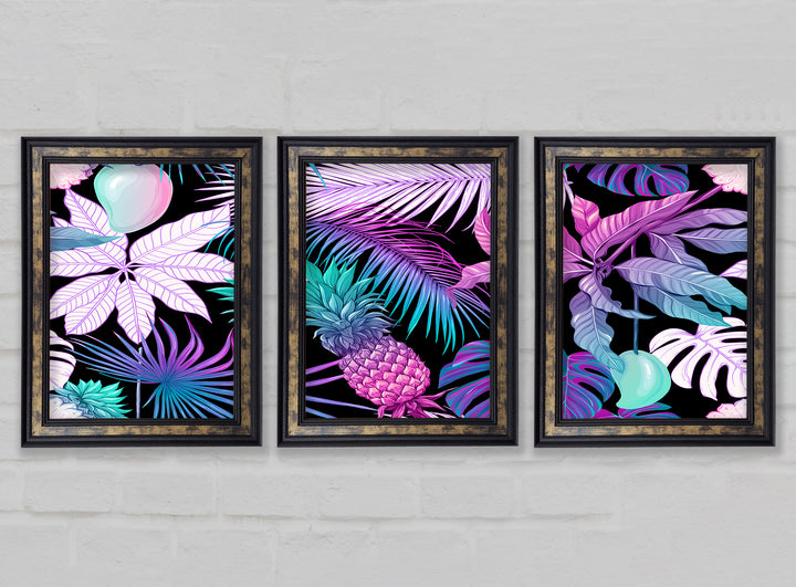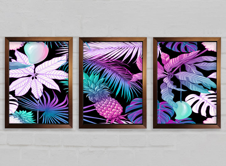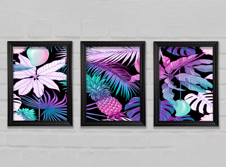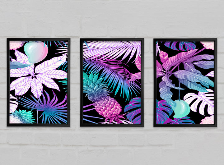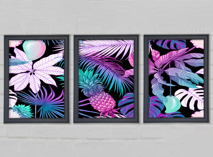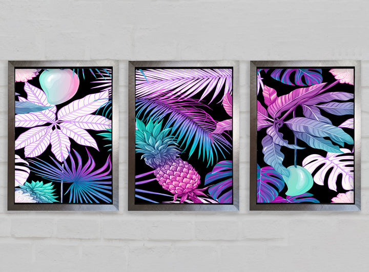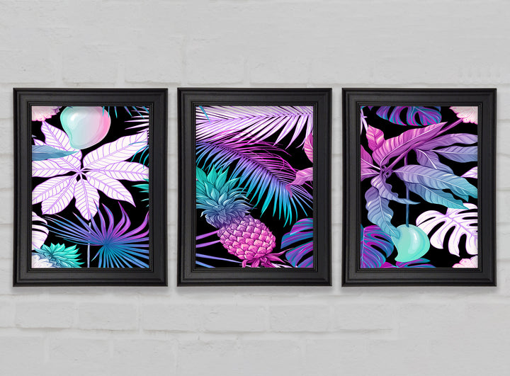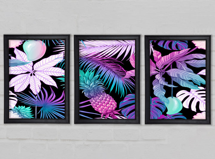 Pineapple Leaves Psychedelic set of 3 framed print wall art, available in mutiple frame colours. Ready to hang from the box and handmade in the United Kingdom.