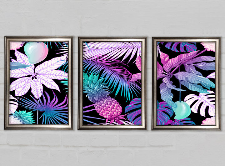 Pineapple Leaves Psychedelic Set of 3 Framed Print