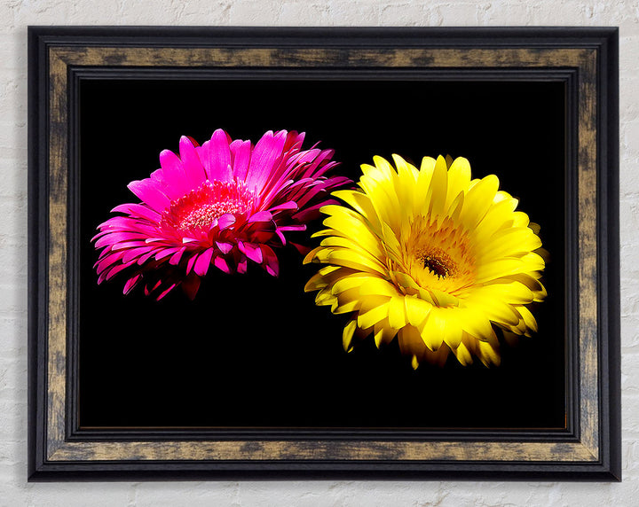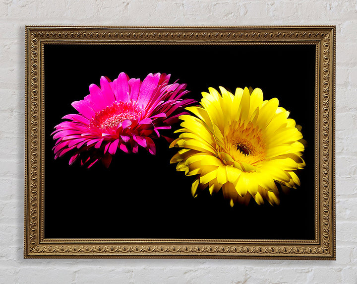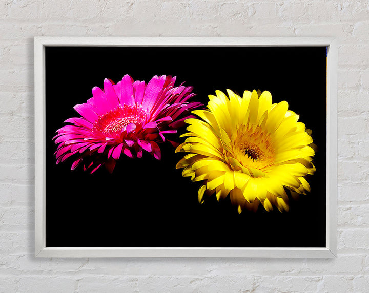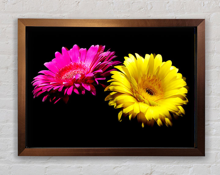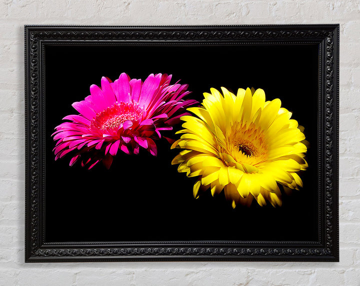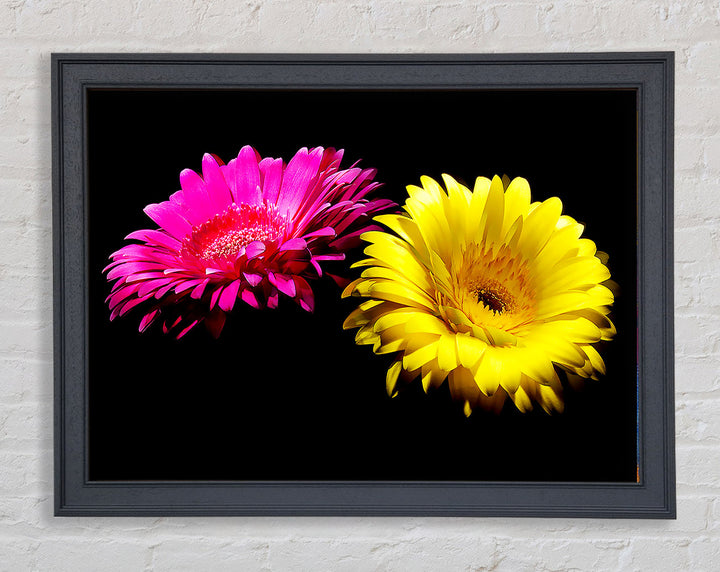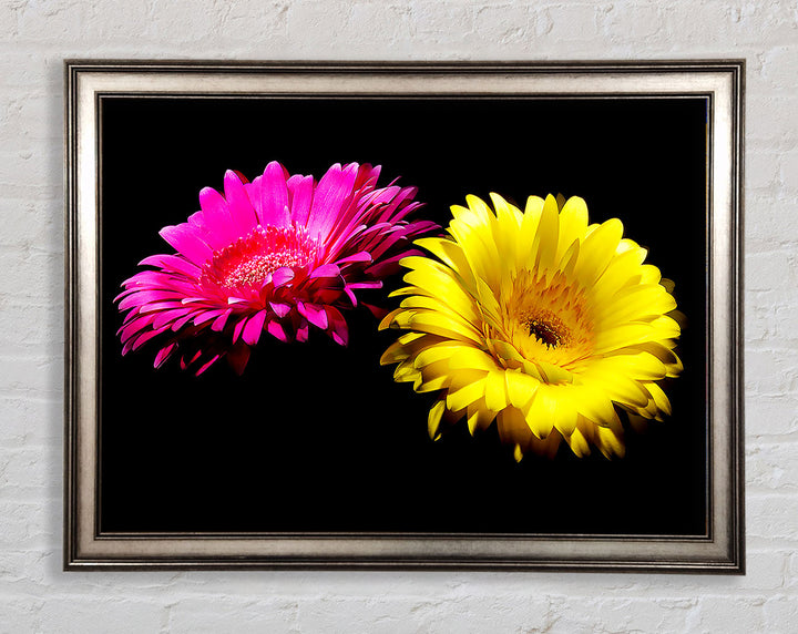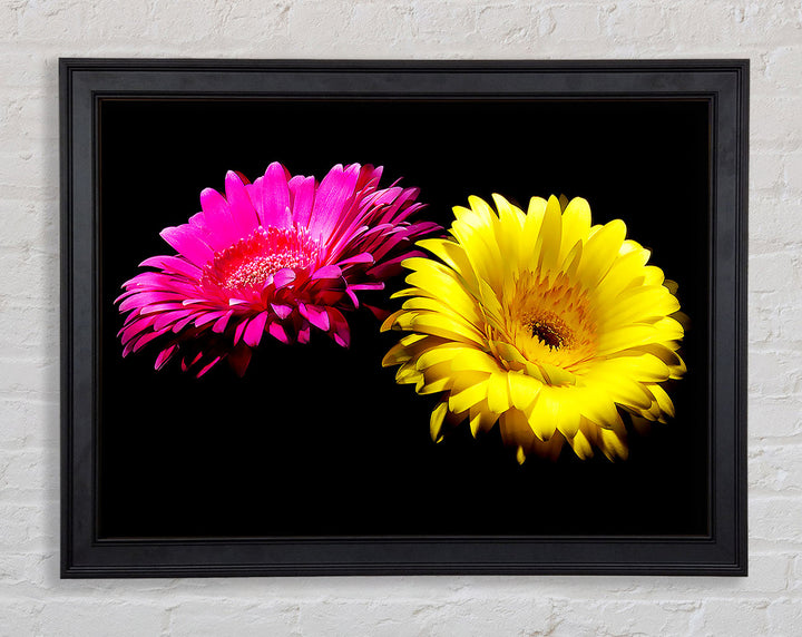 Brighten up any room with the Pink And Yellow Gerbera Delight Framed Print. This stunning piece of framed art features vibrant pink and yellow gerbera daisies, bringing a touch of nature indoors. Available in six sizes, from small to oversized, it can perfectly fit any space in your home or office. Choose from a variety of colors to match your decor. Each print is handmade in the United Kingdom, ensuring top-notch quality and attention to detail. Ready to hang, this framed art offers an effortless way to add beauty and charm to your walls. Elevate your interior design with this cheerful and elegant piece.