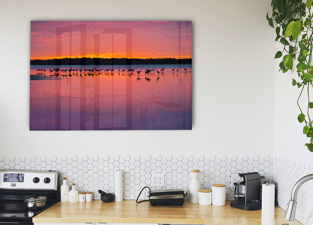 Pink Bird Paradise acrylic print, UV printed onto 5mm thick acrylic glass. Comes with everything you need to hang on your wall.