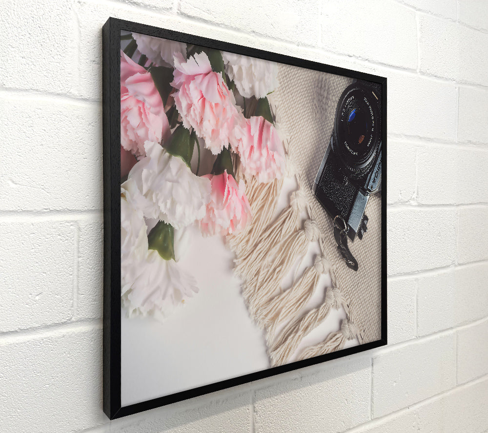Pink Blooms And Film Camera