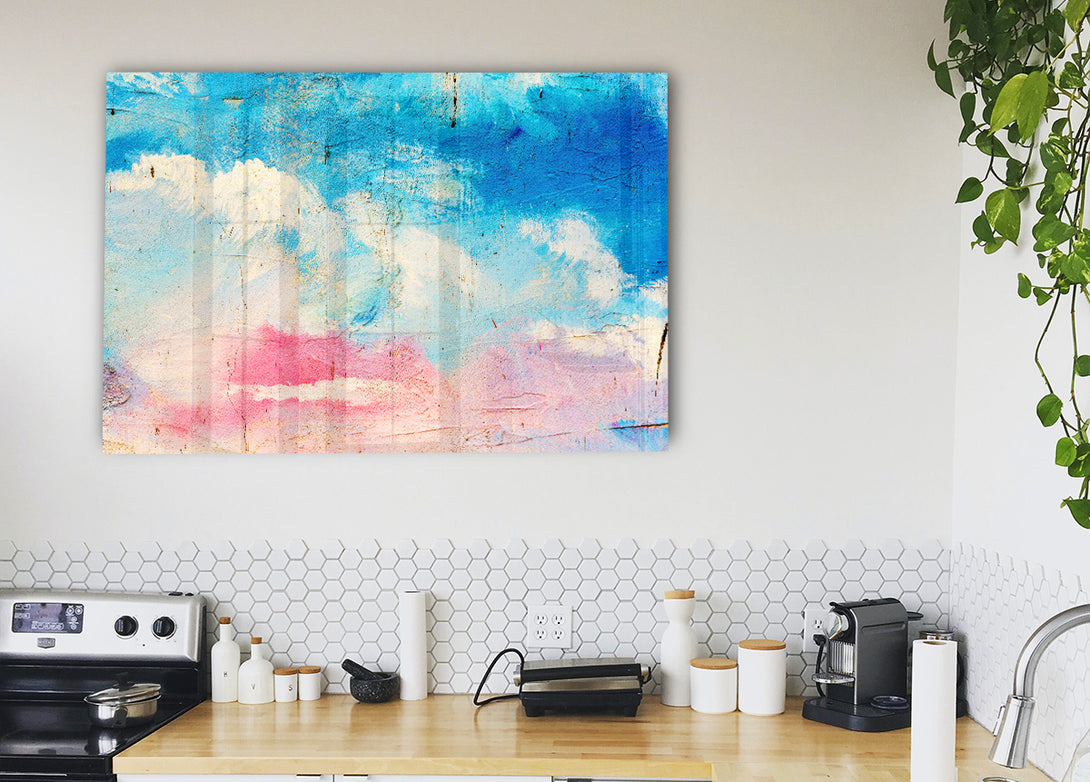 Pink Blue And White Dab acrylic print, UV printed onto 5mm thick acrylic glass. Comes with everything you need to hang on your wall.