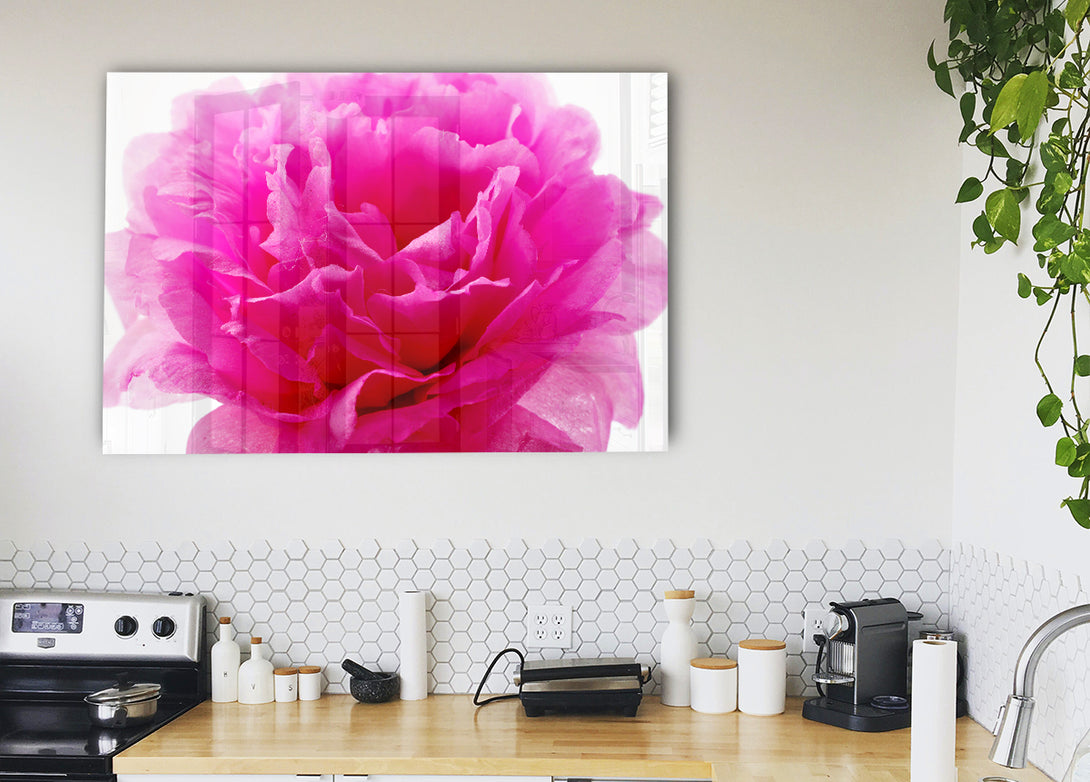 Pink Carnation Ruffles acrylic print, UV printed onto 5mm thick acrylic glass. Comes with everything you need to hang on your wall.