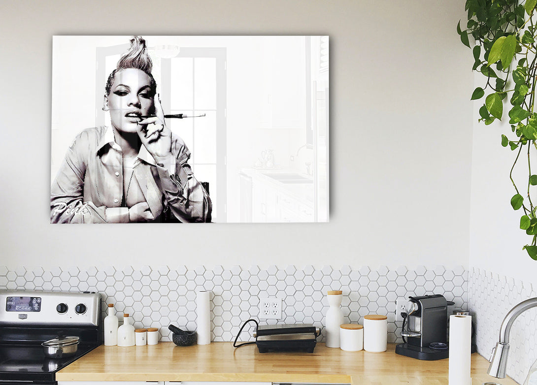 Pink Cigarette B~w acrylic print, UV printed onto 5mm thick acrylic glass. Comes with everything you need to hang on your wall.