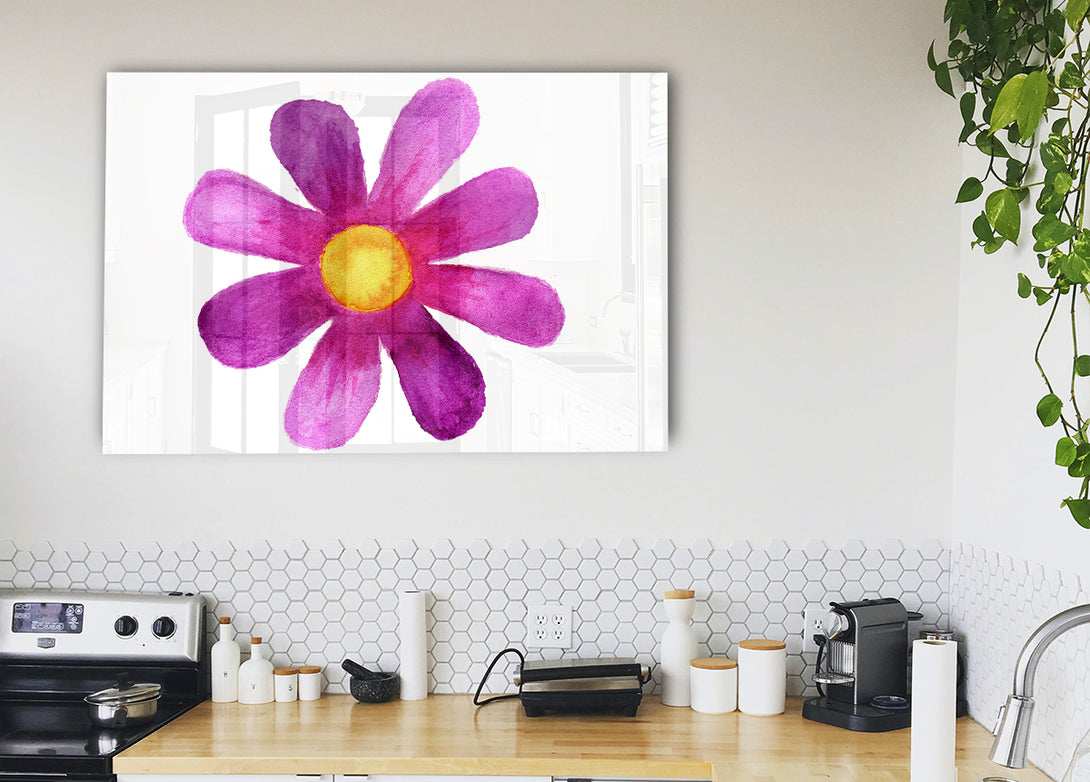 Pink Daisy Face acrylic print, UV printed onto 5mm thick acrylic glass. Comes with everything you need to hang on your wall.