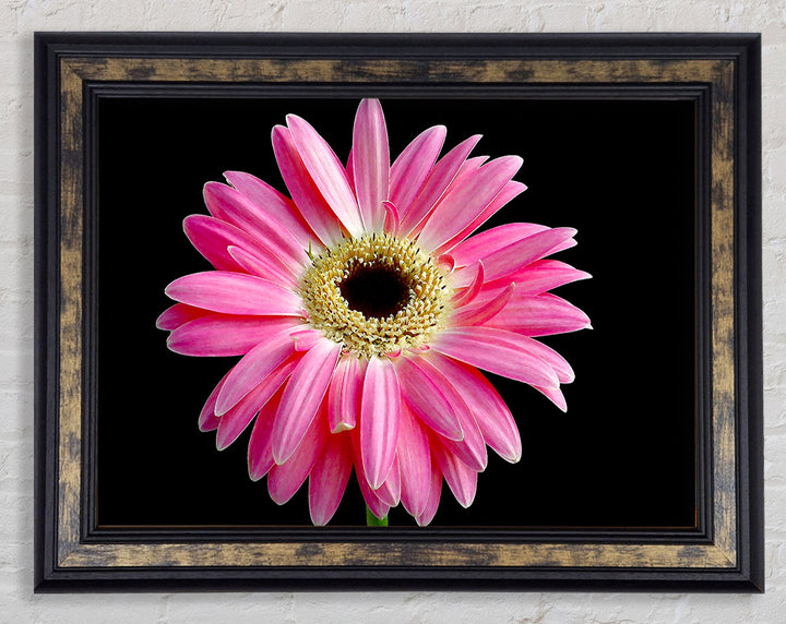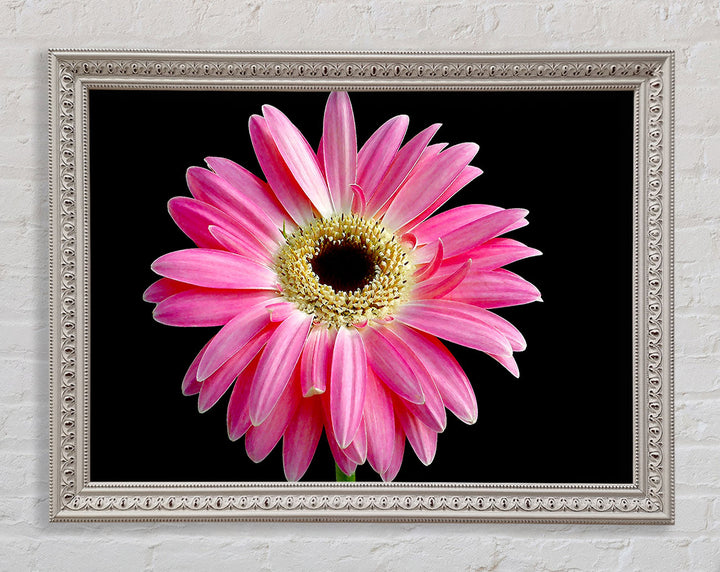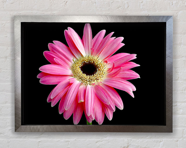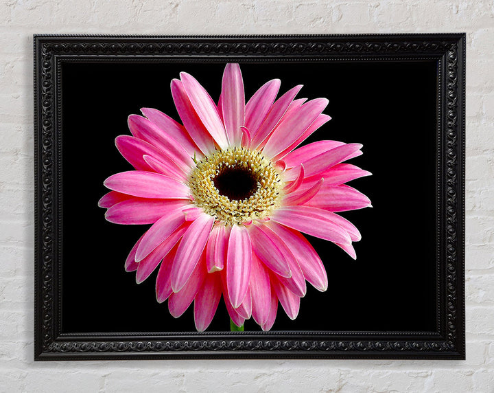Introducing the stunning Pink Daisy On Black Framed Print, a beautiful piece of framed art that brings elegance and charm to any room. This vibrant artwork features a delicate pink daisy set against a bold black background, creating a striking contrast that catches the eye. Available in six sizes, from small to oversized, this framed print fits perfectly in any space, whether it's a cozy corner or a grand hallway.