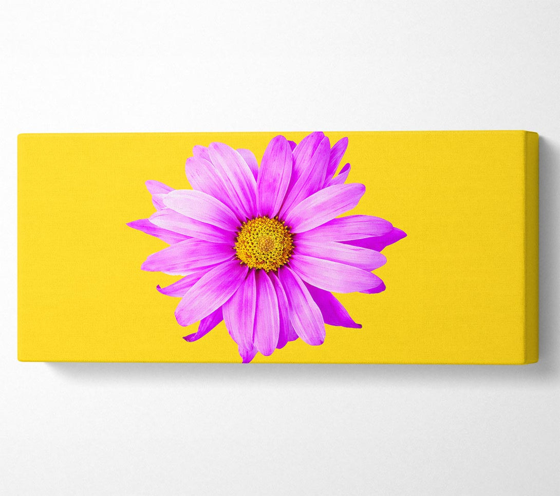 Picture of Pink Daisy On Yellow Panoramic Canvas Wall Art