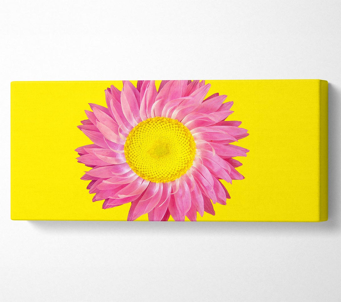 Pink Daisy On Yellow Twist canvas, printed on coated polyester canvas. Mounted on to a 44mm box frame, ready to hang.