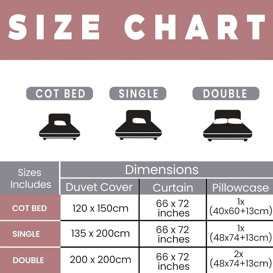 Description: This set includes matching curtains, making it easy to create a coordinated look in your bedroom. The curtains are designed to perfectly complement the duvet cover, completing the room's aesthetic.