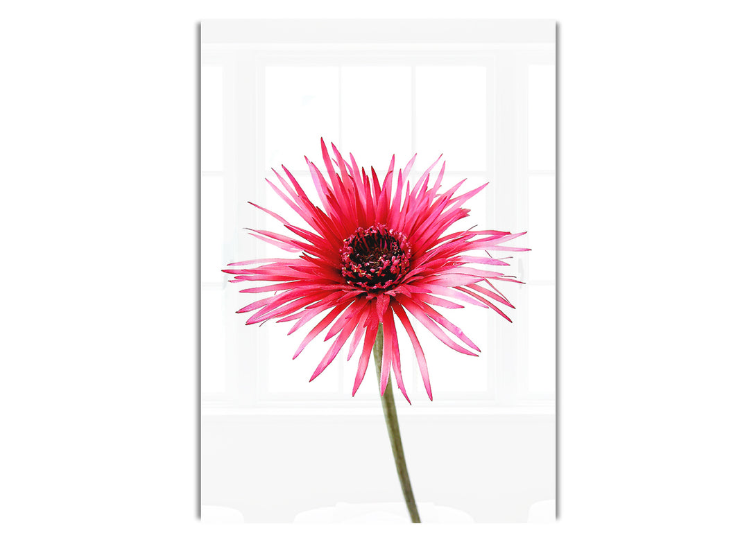 Pink Feather Flower acrylic print, UV printed onto 5mm thick acrylic glass. Comes with everything you need to hang on your wall.