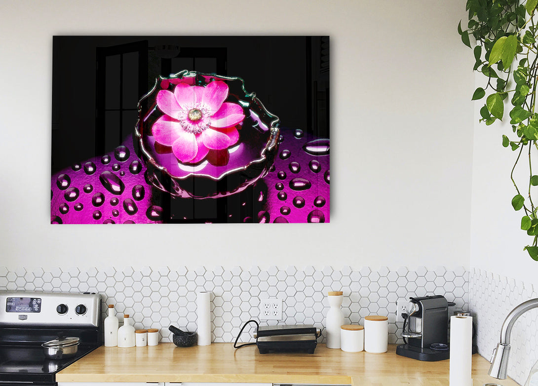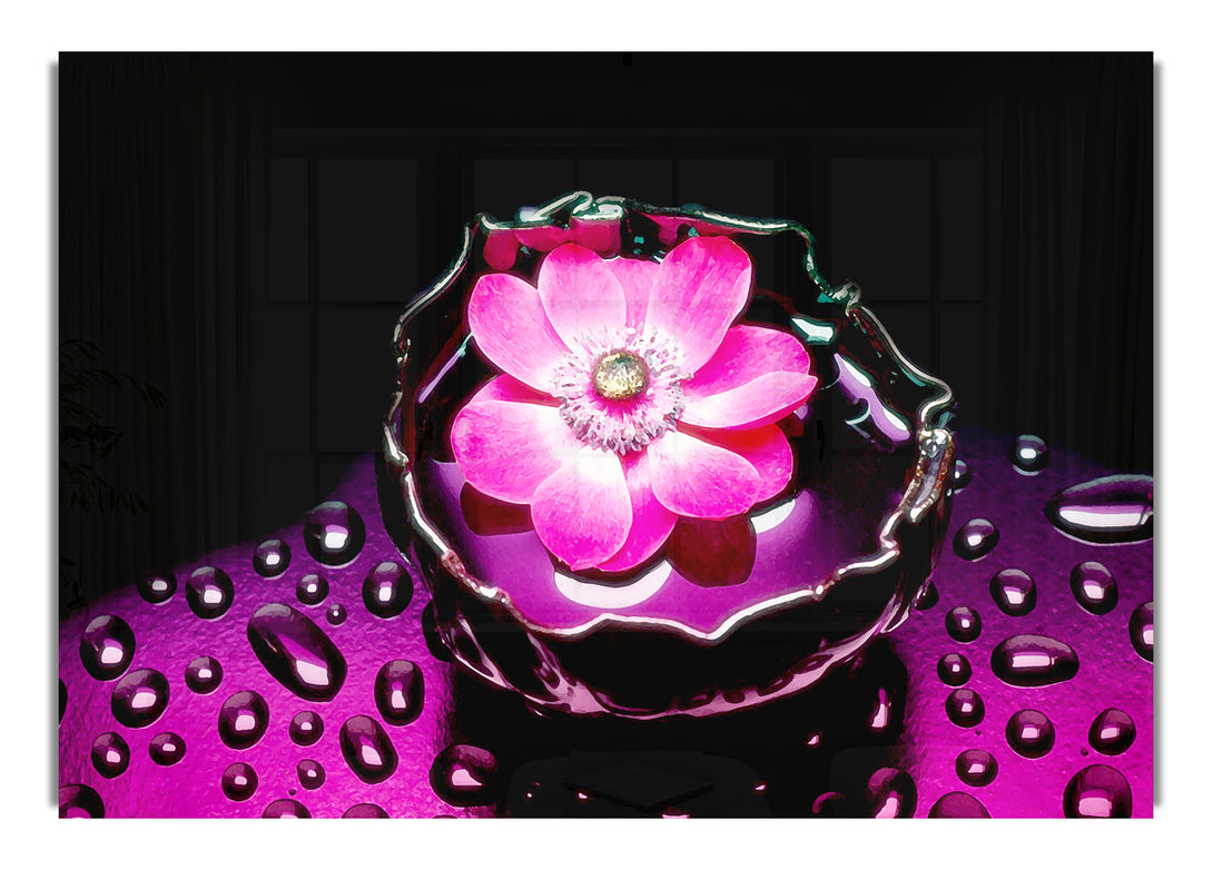 Pink Flower Splash acrylic print, UV printed onto 5mm thick acrylic glass. Comes with everything you need to hang on your wall.