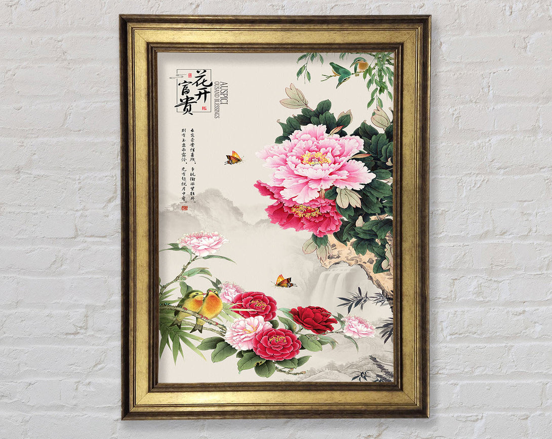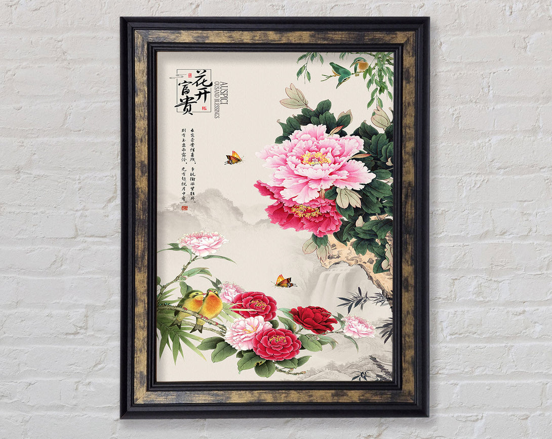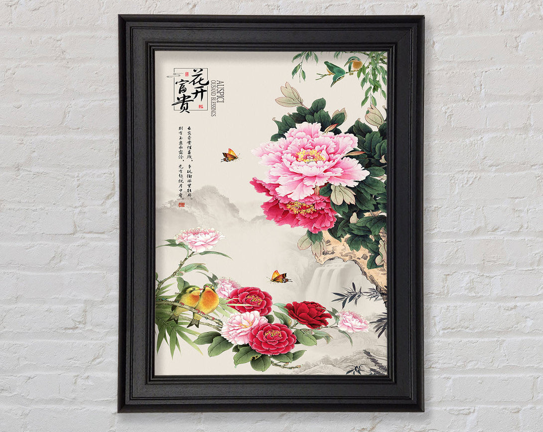 Pink Flowers Birds And Butterflies Framed Print