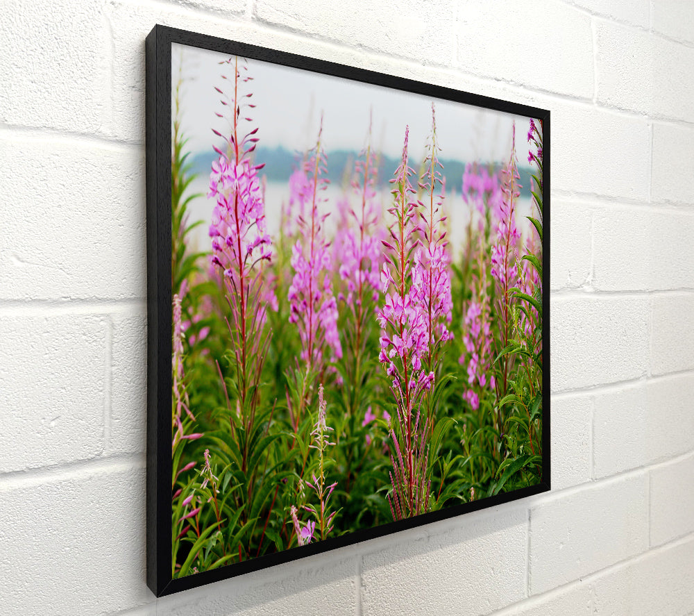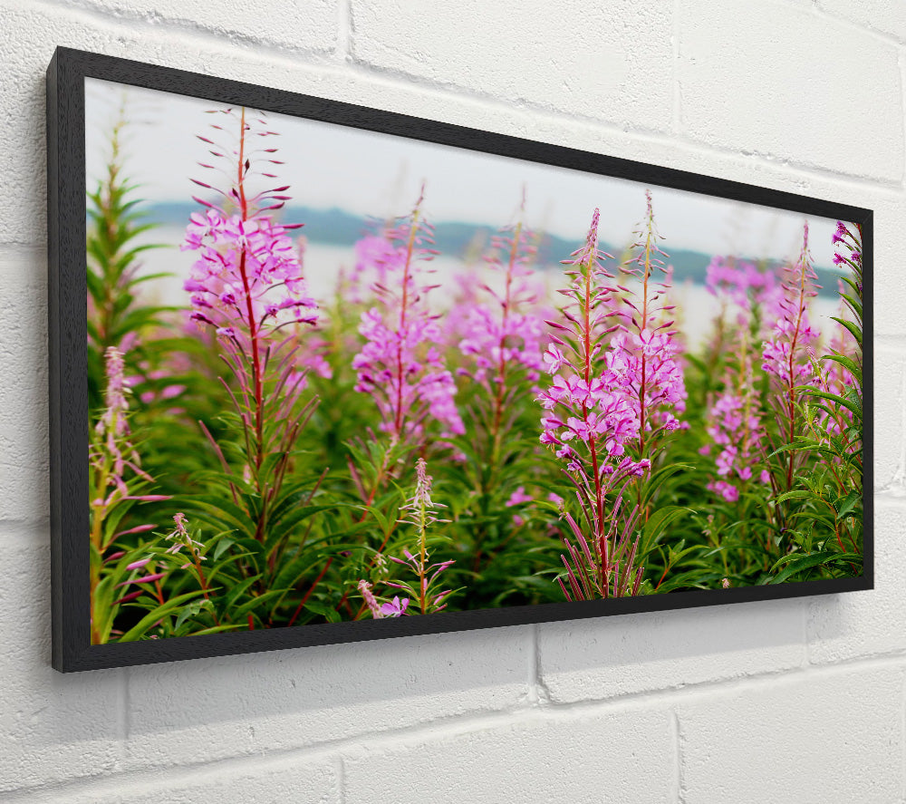 pink flowers in front of the stream