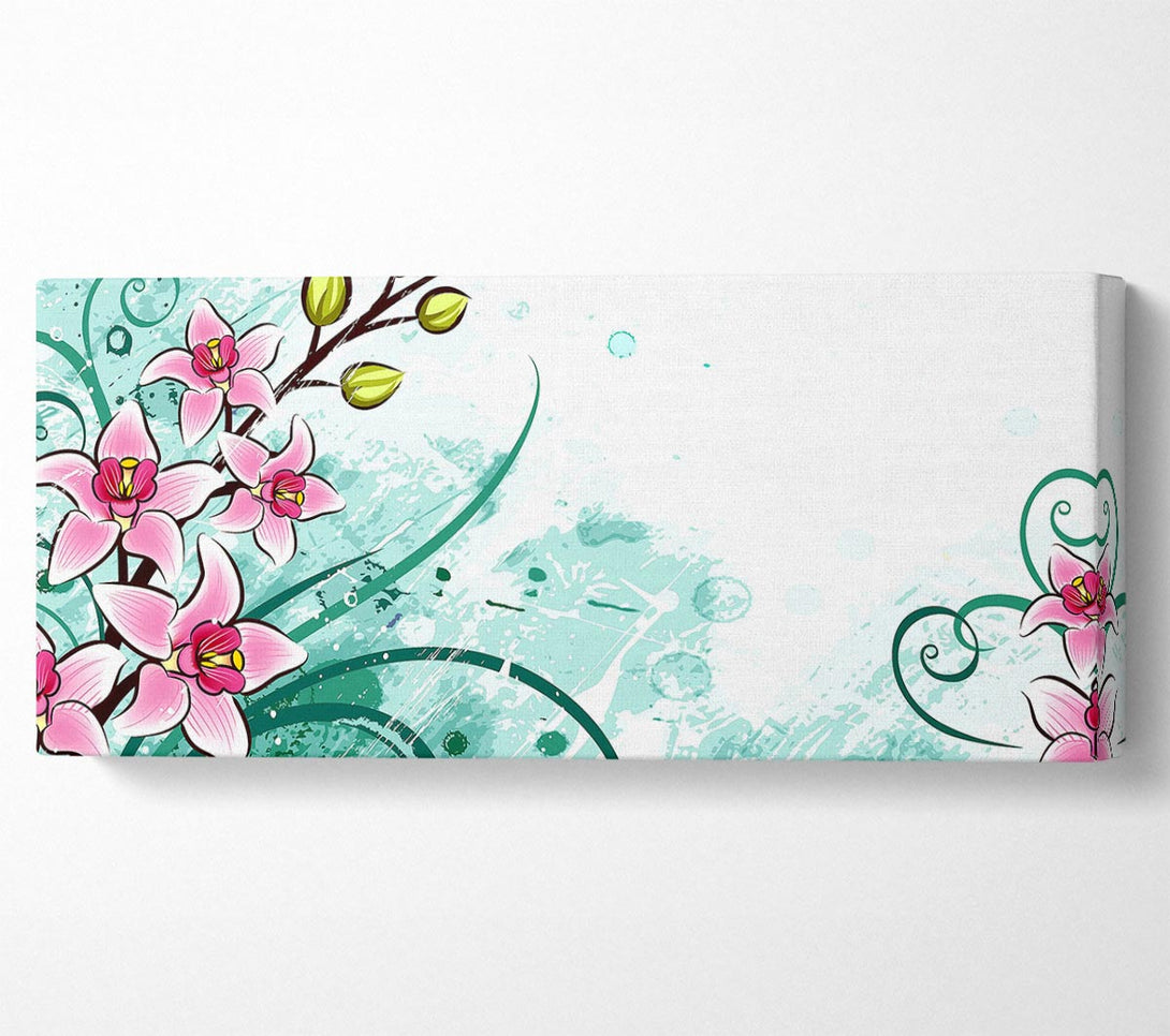 Pink Flowers canvas, printed on coated polyester canvas. Mounted on to a 44mm box frame, ready to hang.