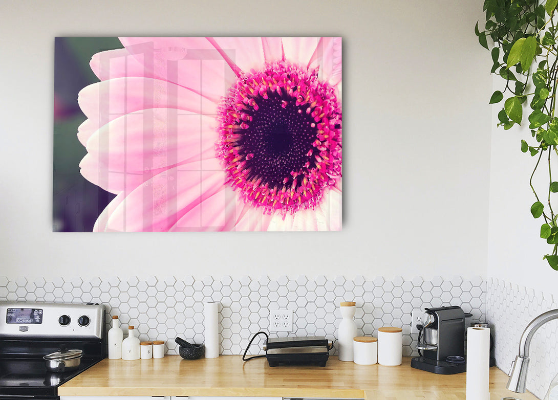 Pink Gerbera Daisy acrylic print, UV printed onto 5mm thick acrylic glass. Comes with everything you need to hang on your wall.