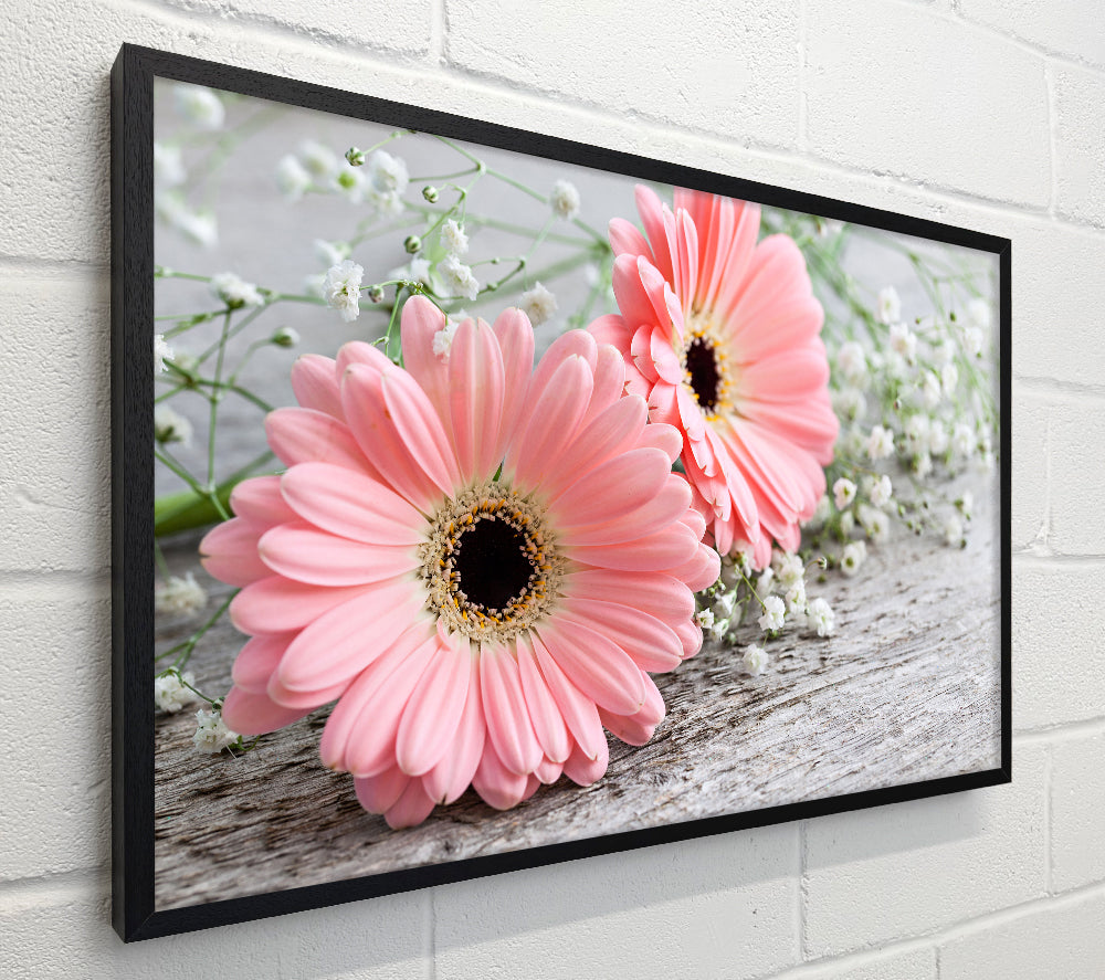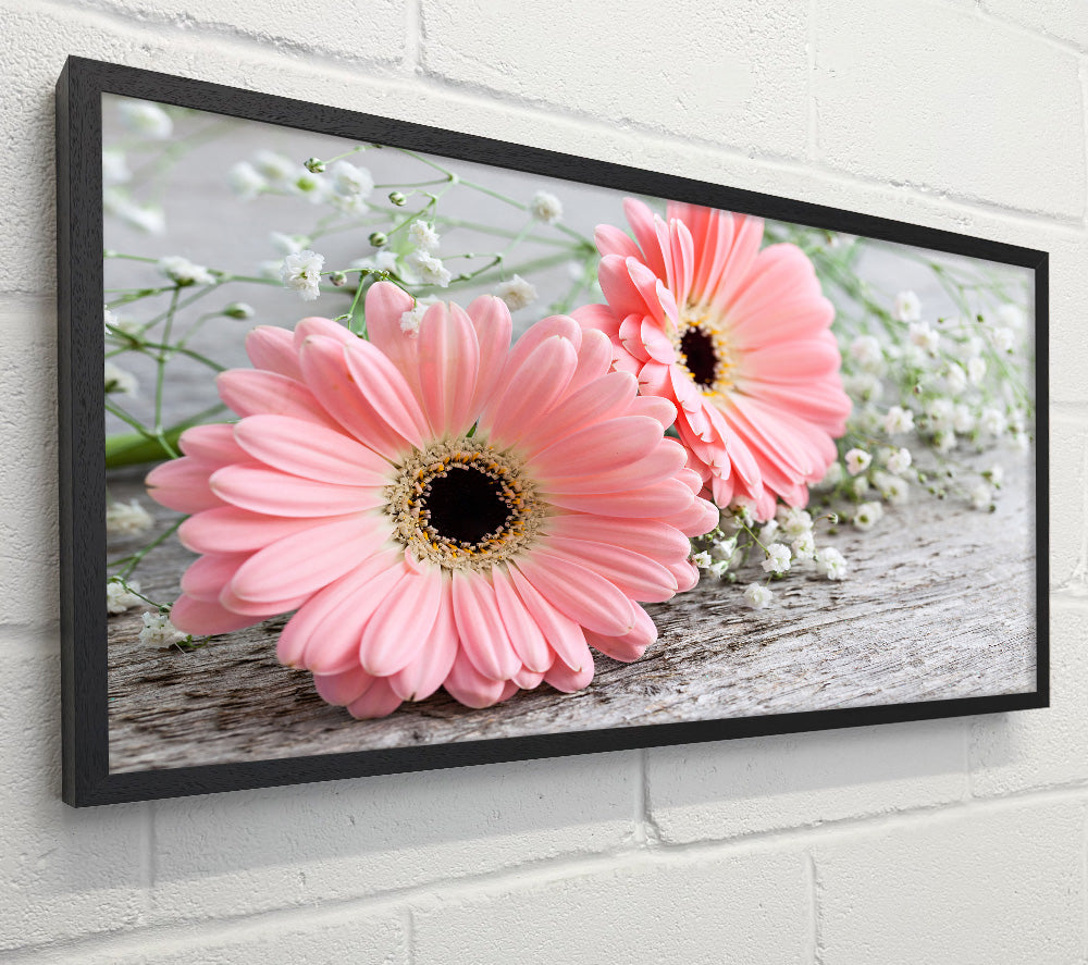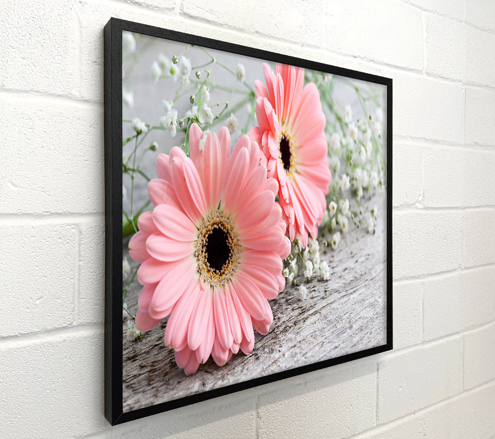 Pink gerbera laying down close