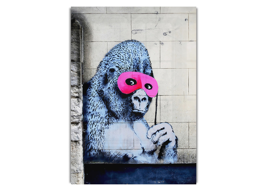 Pink Gorilla Mask acrylic print, UV printed onto 5mm thick acrylic glass. Comes with everything you need to hang on your wall.