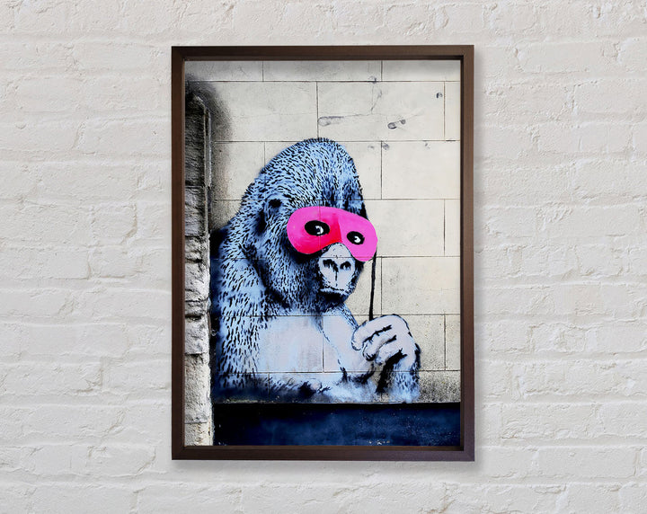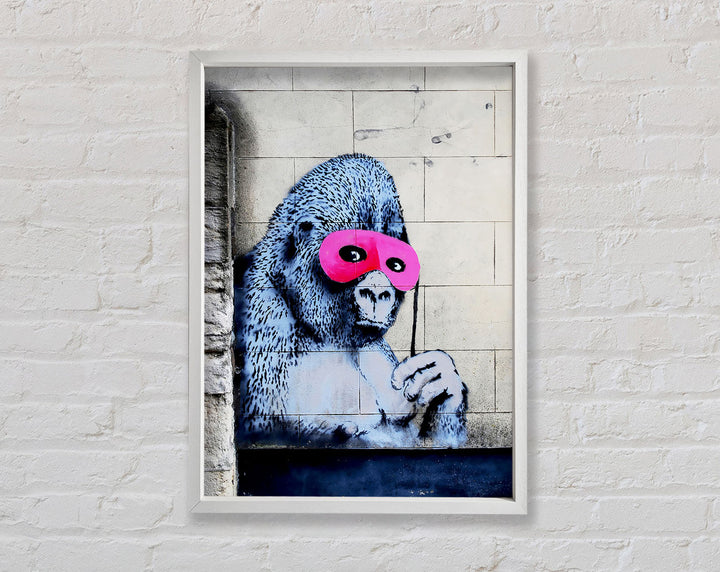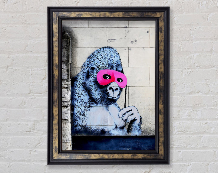 Add a splash of fun and color to your home with the Pink Gorilla Mask Framed Print. This eye-catching framed art comes in six different sizes, ranging from small to oversized, making it perfect for any space. Available in a variety of colors, you can choose the one that best matches your decor. Each print is handmade in the United Kingdom, ensuring high-quality craftsmanship and attention to detail. Ready to hang right out of the box, this unique piece will bring a playful vibe to any room. Elevate your wall decor with this charming and vibrant Pink Gorilla Mask Framed Print today!