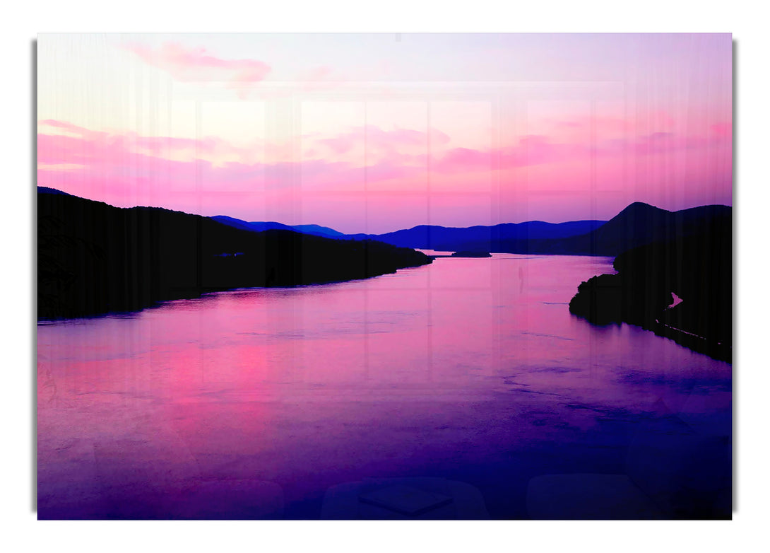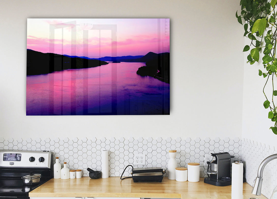 Pink Mountain Lake acrylic print, UV printed onto 5mm thick acrylic glass. Comes with everything you need to hang on your wall.
