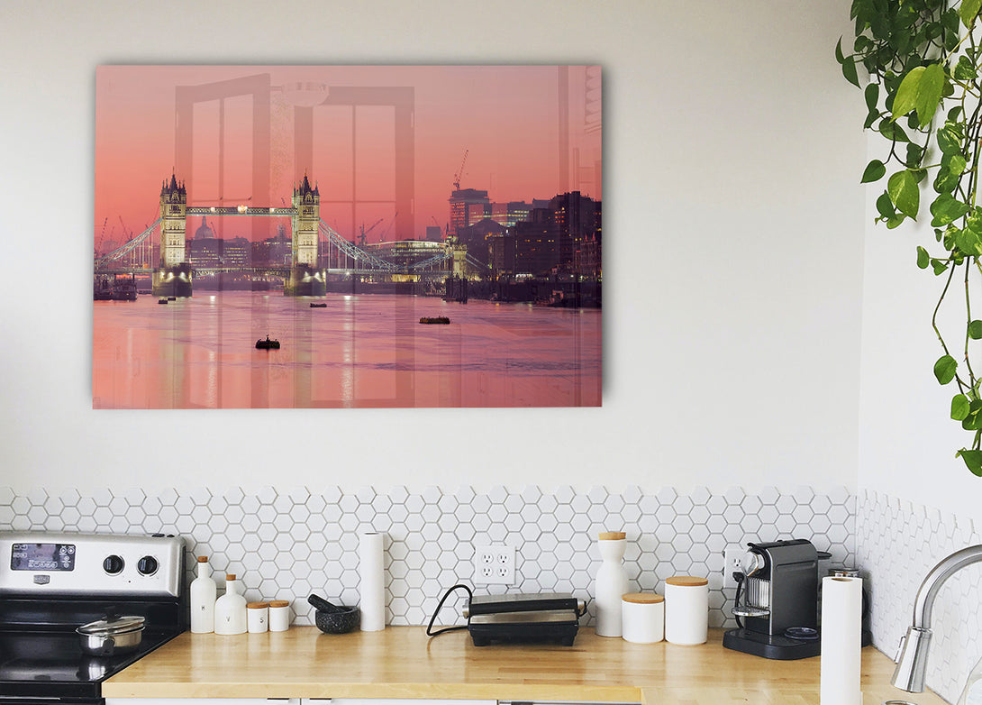 Pink Nights Through The Tower Bridge acrylic print, UV printed onto 5mm thick acrylic glass. Comes with everything you need to hang on your wall.