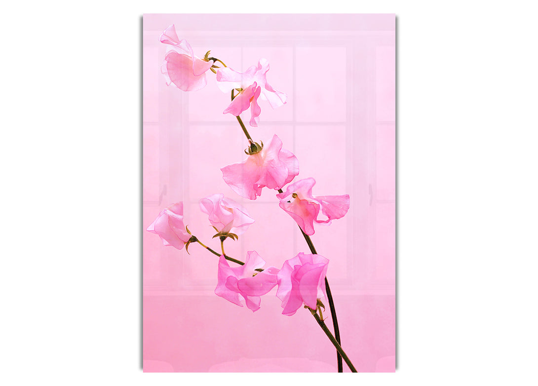 Pink On Pink Flowers Canvasb acrylic print, UV printed onto 5mm thick acrylic glass. Comes with everything you need to hang on your wall.