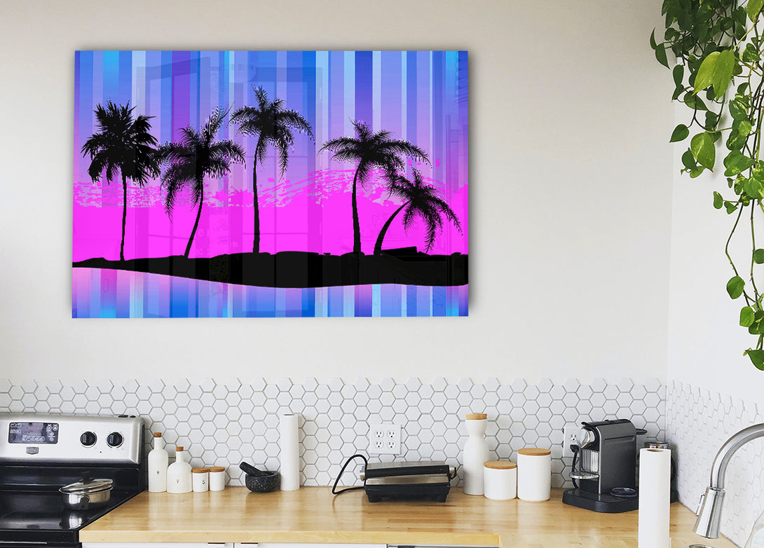 Pink Palmtree Paradise Modern Canvasb L acrylic print, UV printed onto 5mm thick acrylic glass. Comes with everything you need to hang on your wall.