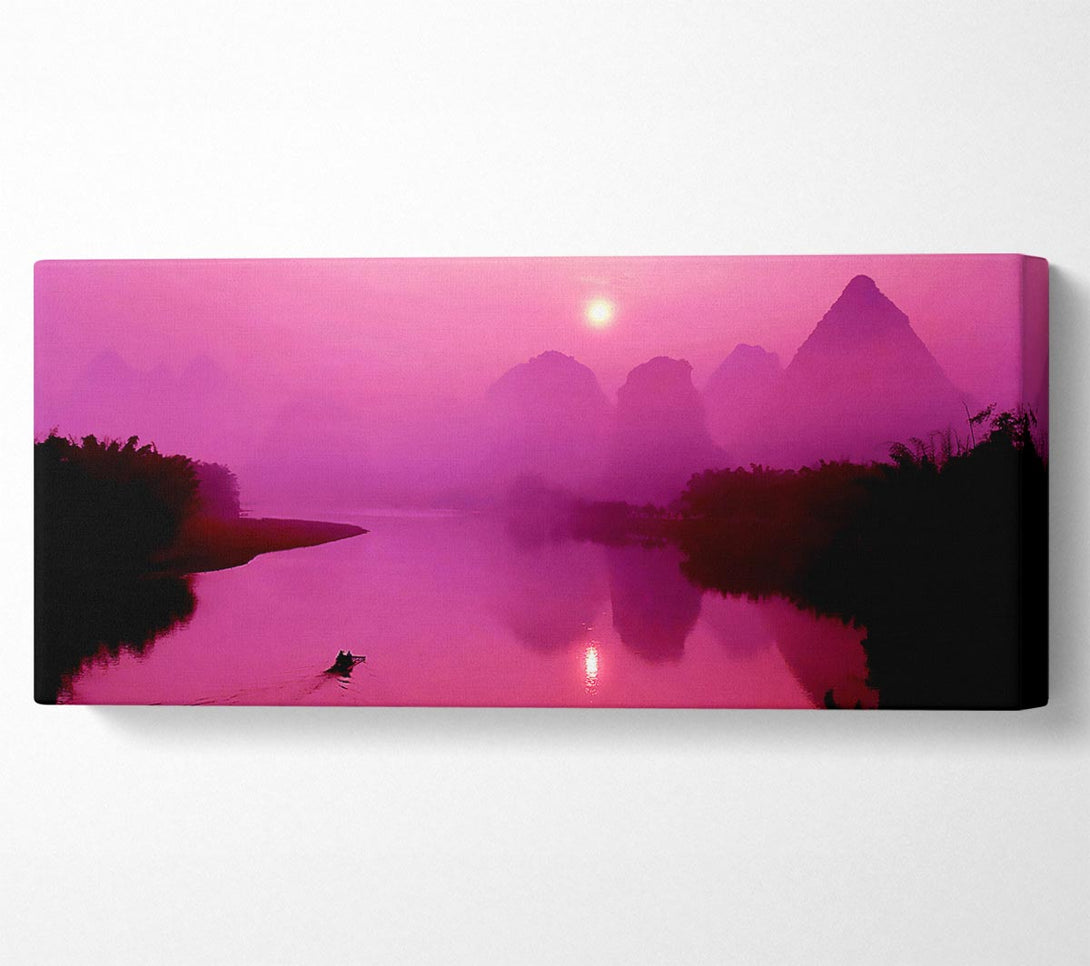 Pink Paradise Lake canvas, printed on coated polyester canvas. Mounted on to a 44mm box frame, ready to hang.