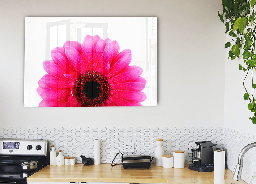 Pink Petal Gerbera acrylic print, UV printed onto 5mm thick acrylic glass. Comes with everything you need to hang on your wall.