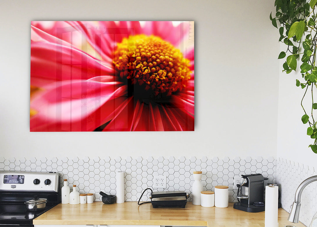 Pink Pom Pom Centre acrylic print, UV printed onto 5mm thick acrylic glass. Comes with everything you need to hang on your wall.