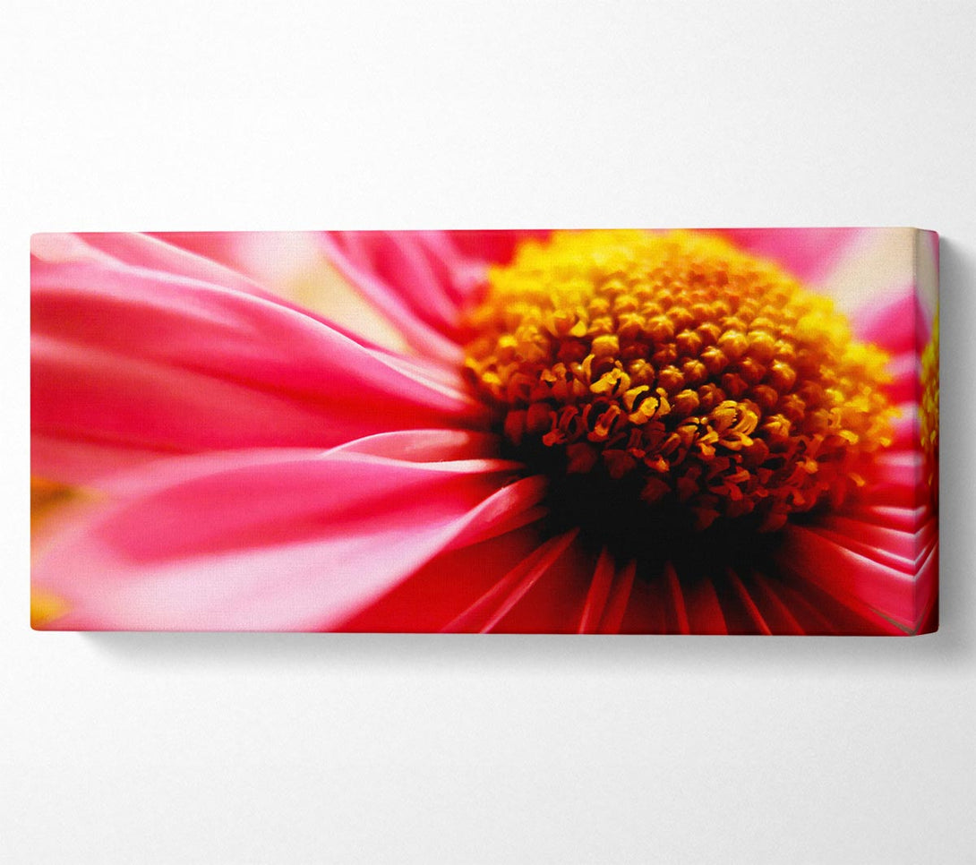 Pink Pom Pom Centre canvas, printed on coated polyester canvas. Mounted on to a 44mm box frame, ready to hang.