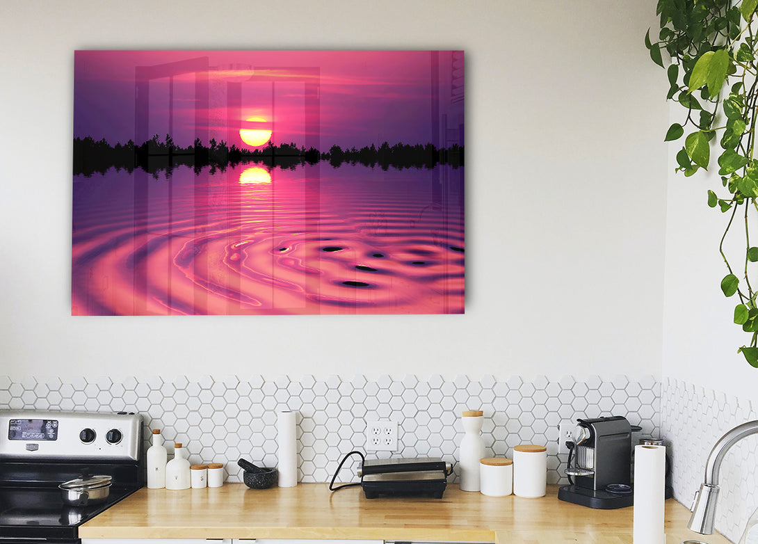 Pink Sunset Lake Swirl acrylic print, UV printed onto 5mm thick acrylic glass. Comes with everything you need to hang on your wall.