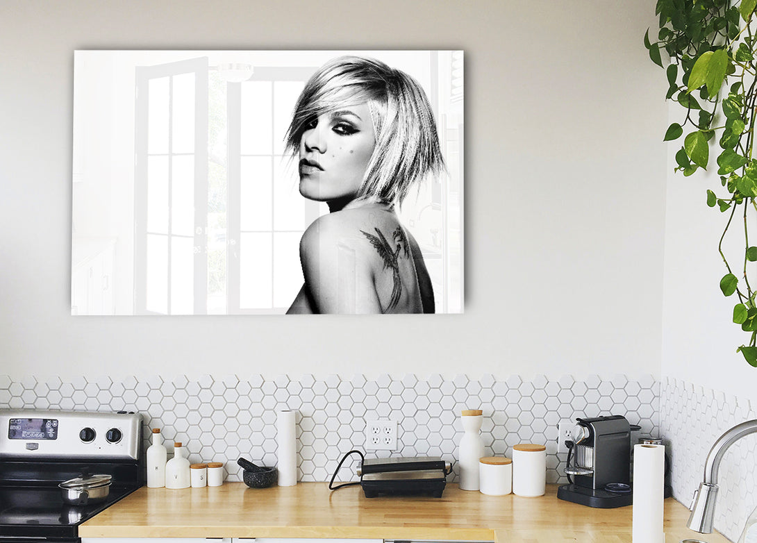 Pink Tatto B~w acrylic print, UV printed onto 5mm thick acrylic glass. Comes with everything you need to hang on your wall.