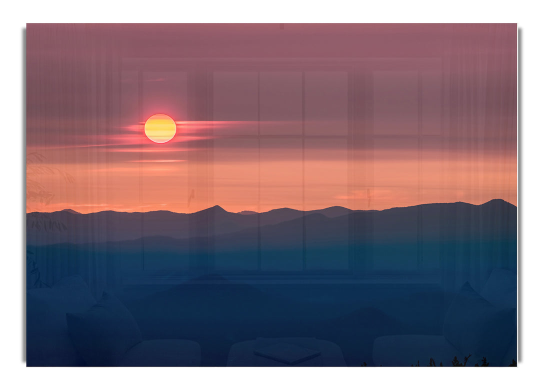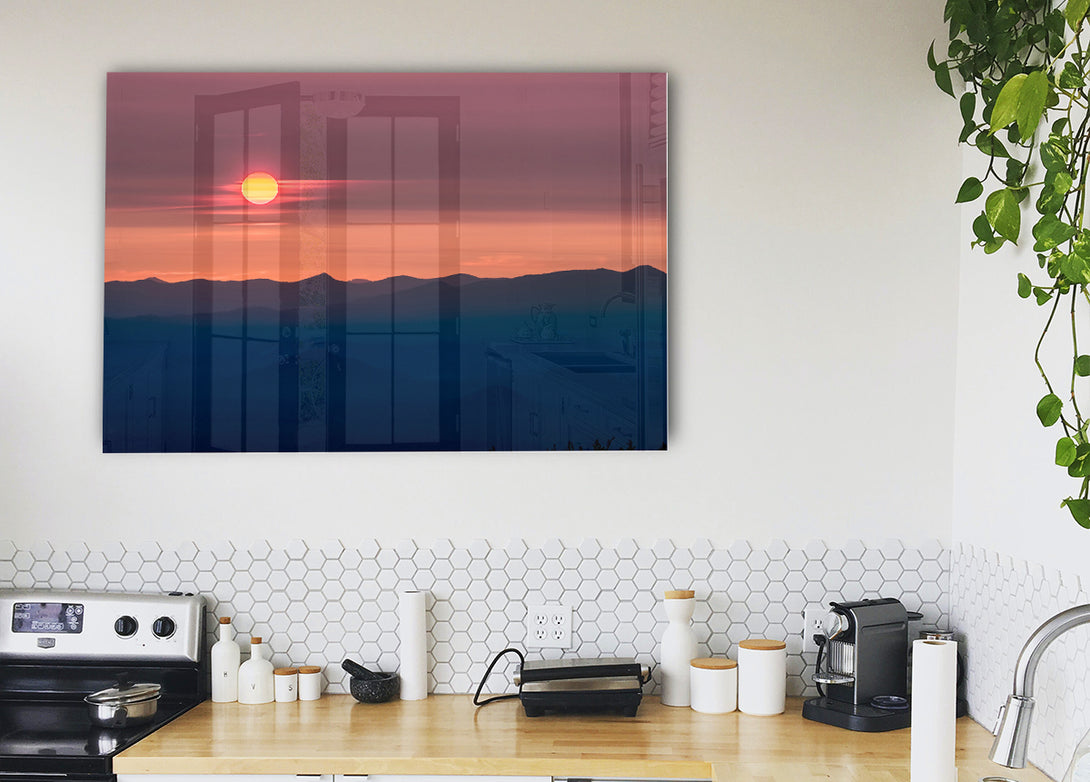 Pink Tranquil Sun acrylic print, UV printed onto 5mm thick acrylic glass. Comes with everything you need to hang on your wall.
