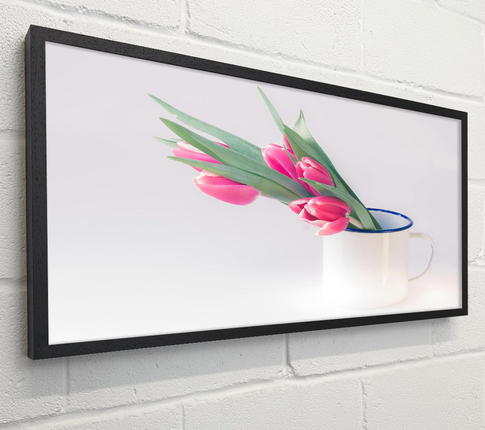 Pink Tulips In White Mug