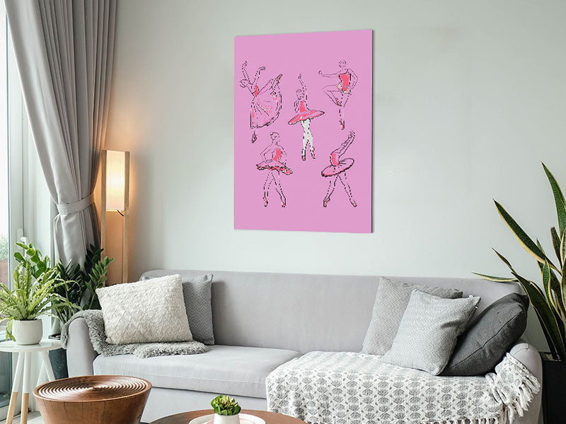 Pink White Ballerina 2 Printed on brushed aluminium dibond. A modern way to display art and easy to maintain.
