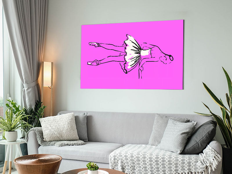 Pink White Ballerina 3 Printed on brushed aluminium dibond. A modern way to display art and easy to maintain.
