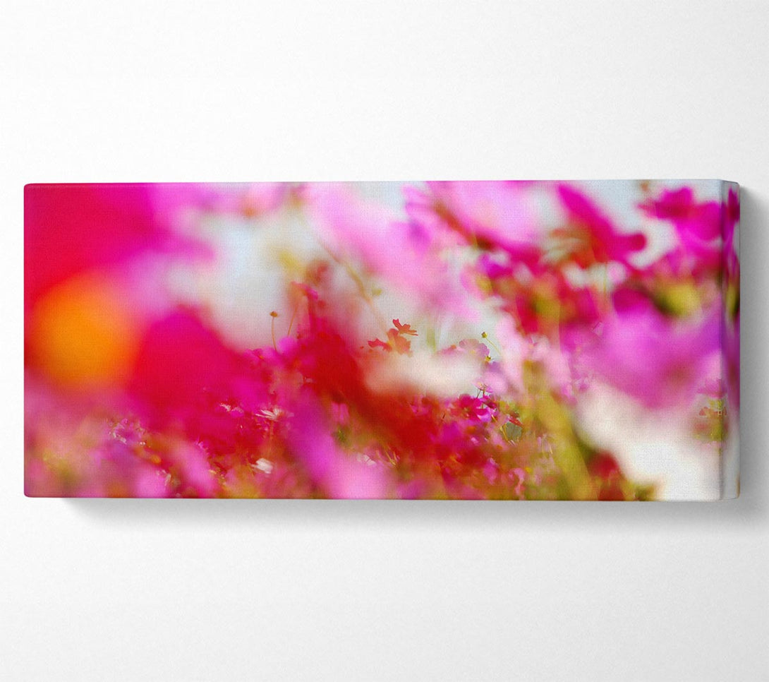 Pinkish canvas, printed on coated polyester canvas. Mounted on to a 44mm box frame, ready to hang.
