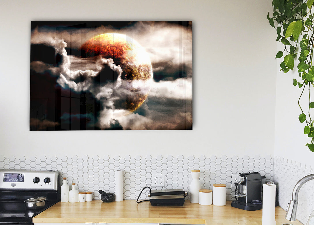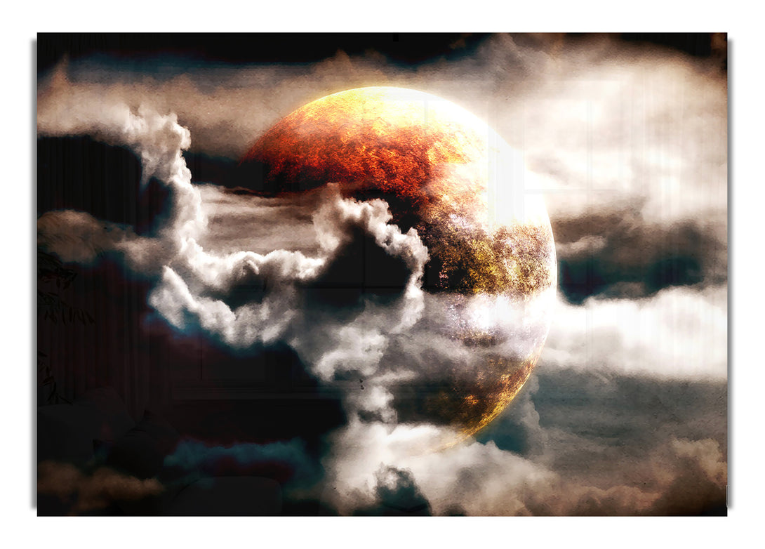 Planet In The Clouds acrylic print, UV printed onto 5mm thick acrylic glass. Comes with everything you need to hang on your wall.